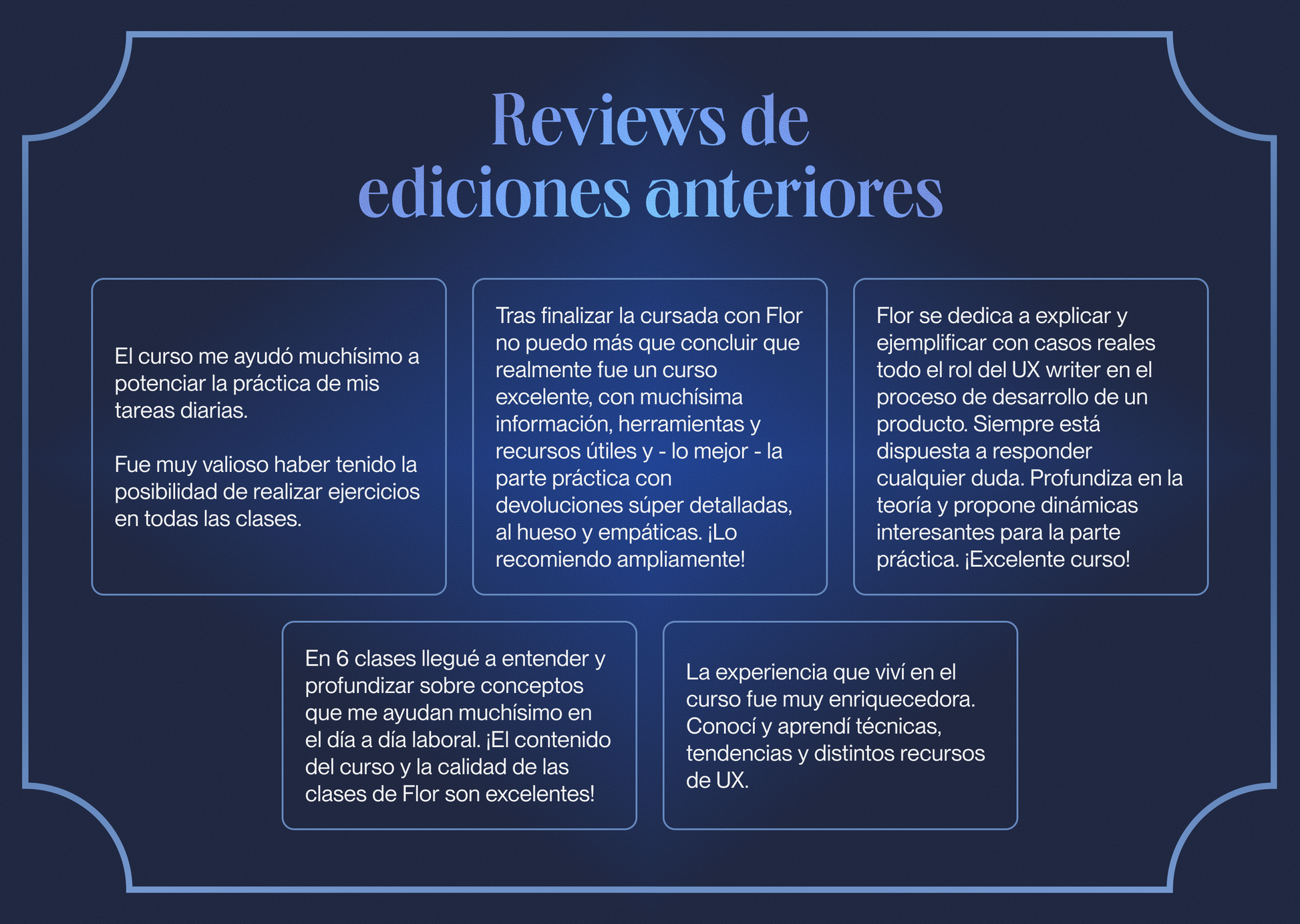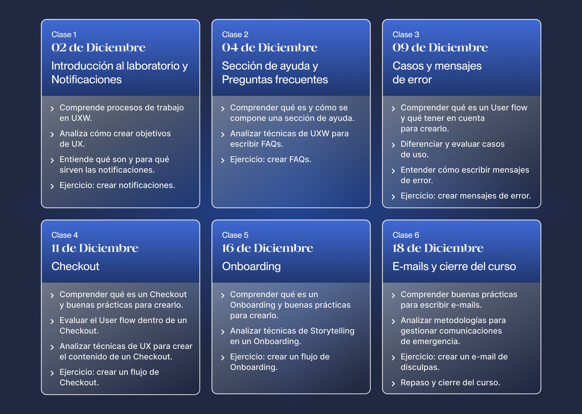 Crearás contenidos de casos reales para distintas pantallas y flujos. Recibirás feedback en vivo y entenderás los procesos de iteración para llegar al contenido final