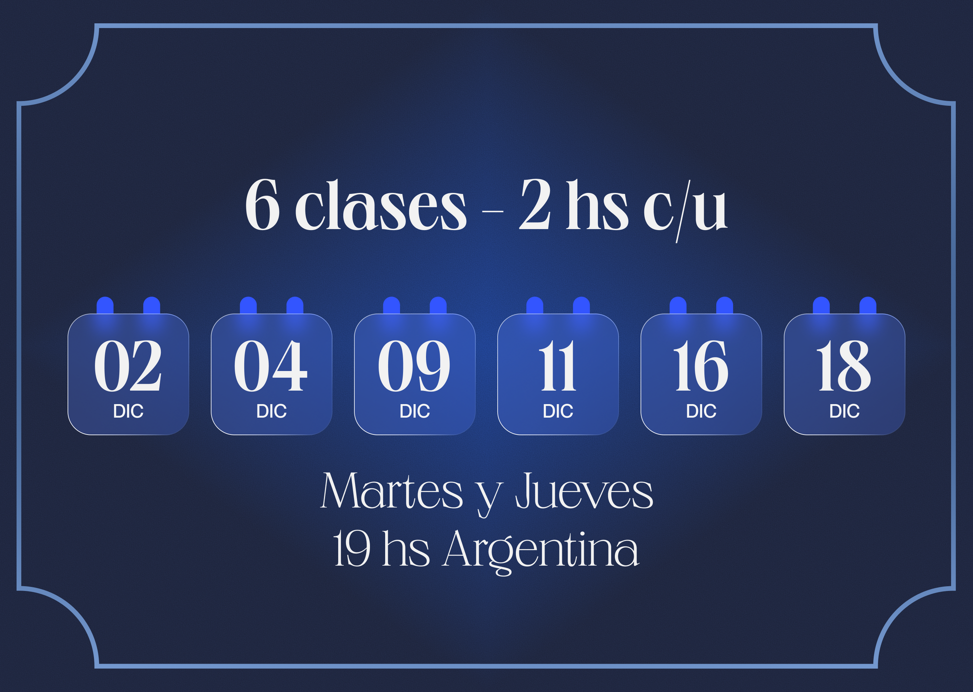 6 clases de 2 h c/u